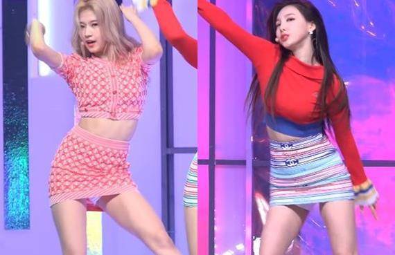 TWICE《M! Countdown》的新歌舞台上,除了定延與彩锳穿著褲裝之外,其余成員都以短裙亮相,但這次《Fancy》編舞有不少跨腿扭動的動作,子瑜就被拍到原本在大腿中斷的裙子,跳到最后已經縮到大腿根本,她多次用手把裙子往下拉,但還是不小心露出黑色底褲以及臀部下圍,讓粉絲氣瘋!