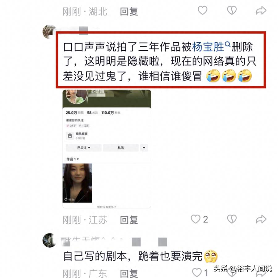 翻看蘇晴晴以往的動態不難發現,她的失婚意愿非常堅定,甚至到了「不死不休」的地步,如今卻突然換了面目,再加上時間也已經過去了很久,種種細節都表明了此事就是所謂的劇本。