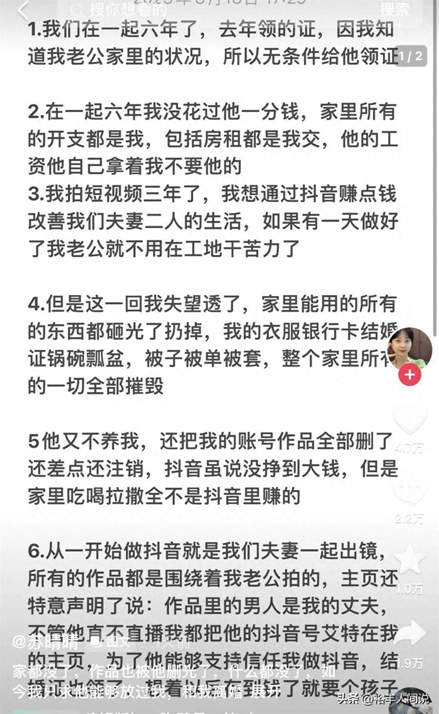 從這一細節不難斷定,蘇晴晴所謂的「家暴」就是劇本。退一萬步講,既然刪除,為什麼小號還有那麼多的視訊,后續是不是直接轉型做帶貨網紅呢?