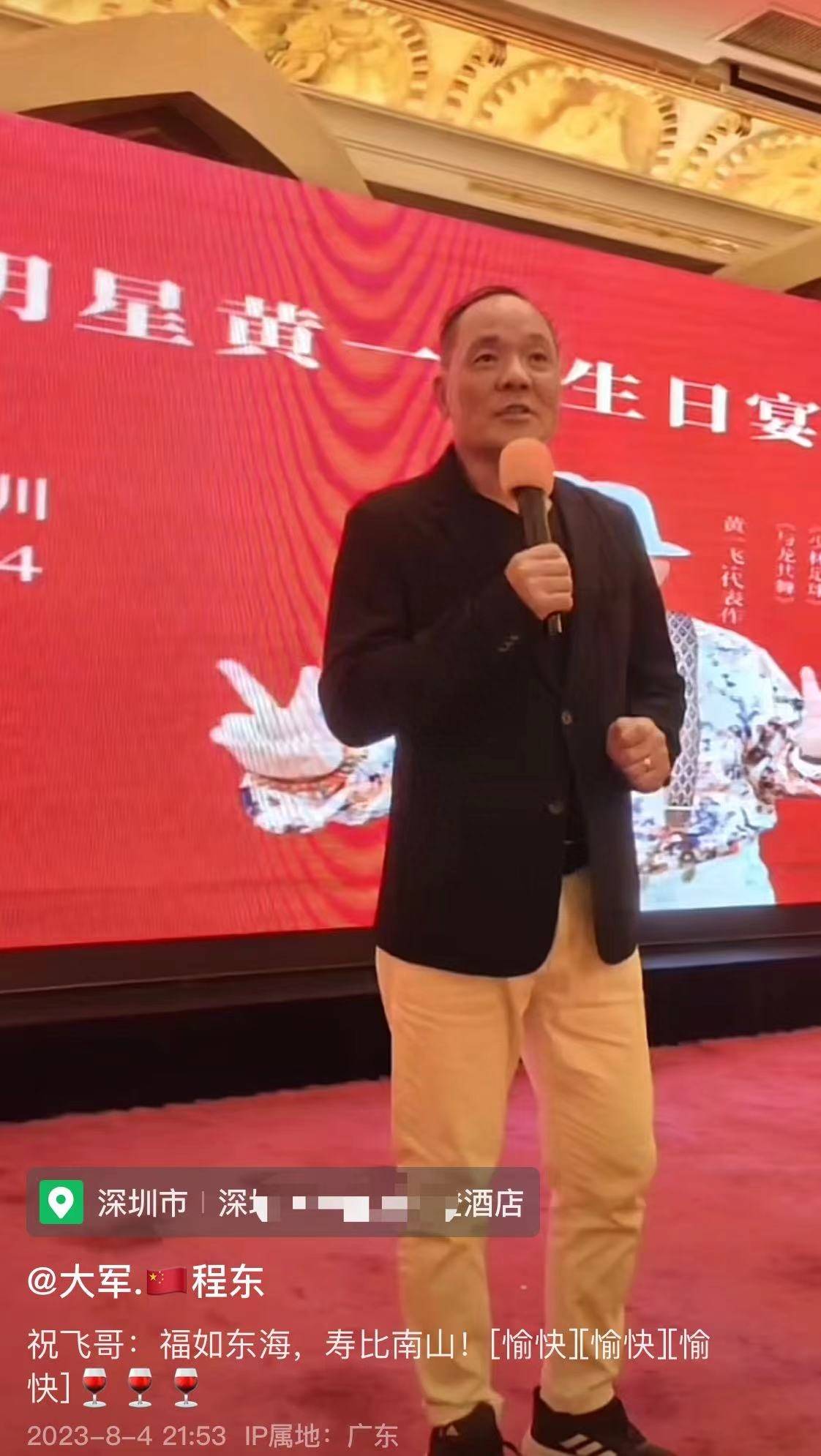 8月4日,香港知名演員程東曬出視訊,曝光自己參加老戲骨黃一飛壽宴的畫面,并配文「祝飛哥:福如東海,壽比南山」,引發網友熱議。