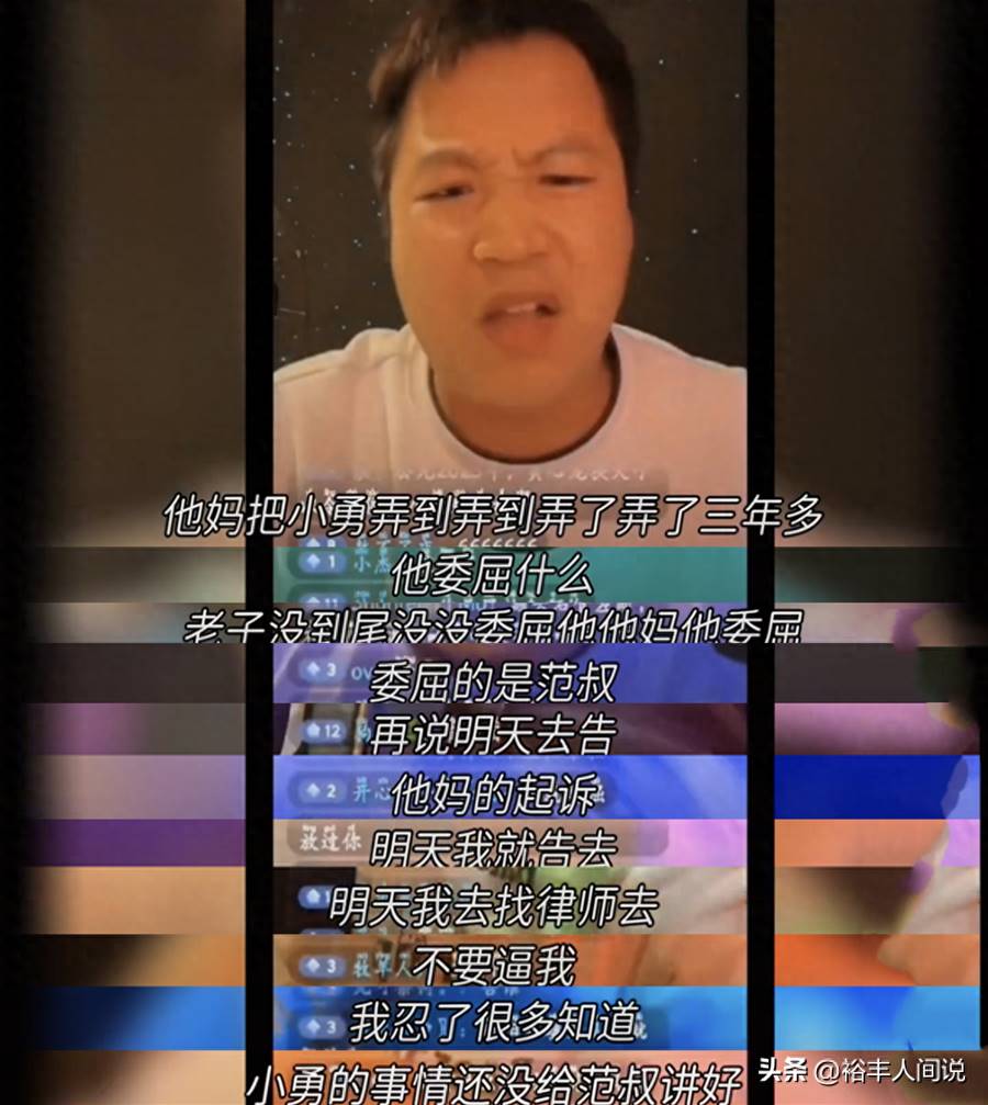 「他把小勇弄到三年多,他委屈什麼,老子沒委屈,他委屈什麼。他委屈,委屈的是范叔,是我,明天告他去,范叔明天去告……」