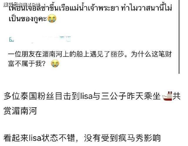 9月11日,Lisa與LV三少一同現身湄南河游輪,并被人在游輪上偶遇。許多泰國影迷也證實看到Lisa與LV三少一同欣賞湄南河美景。