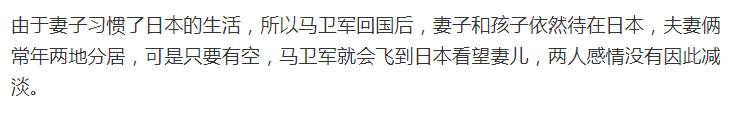 但與此同時,有個問題也縈繞在大家的心中,那就是馬衛軍的妻兒為何不現身呢?據悉這是因為馬衛軍常年與日籍妻兒分居兩地,所以妻兒無法很快的到達國內,因此才沒有見到他們現身。