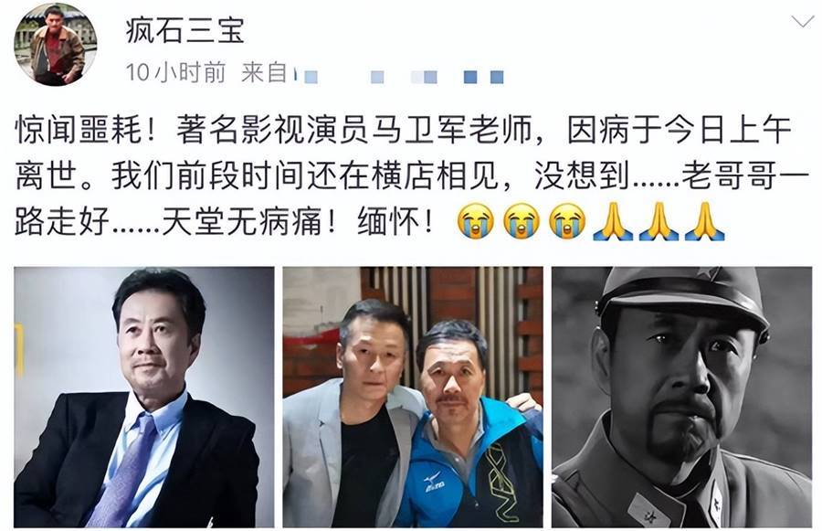 尤其是演員瘋石三寶,更是和大家透露了馬衛軍去世的經過,稱馬衛軍實際上是在9月13日去世的,當時的他走的非常突然,讓很多人都沒有準備,就連他也是接到電話后,才得知對方去世的消息。